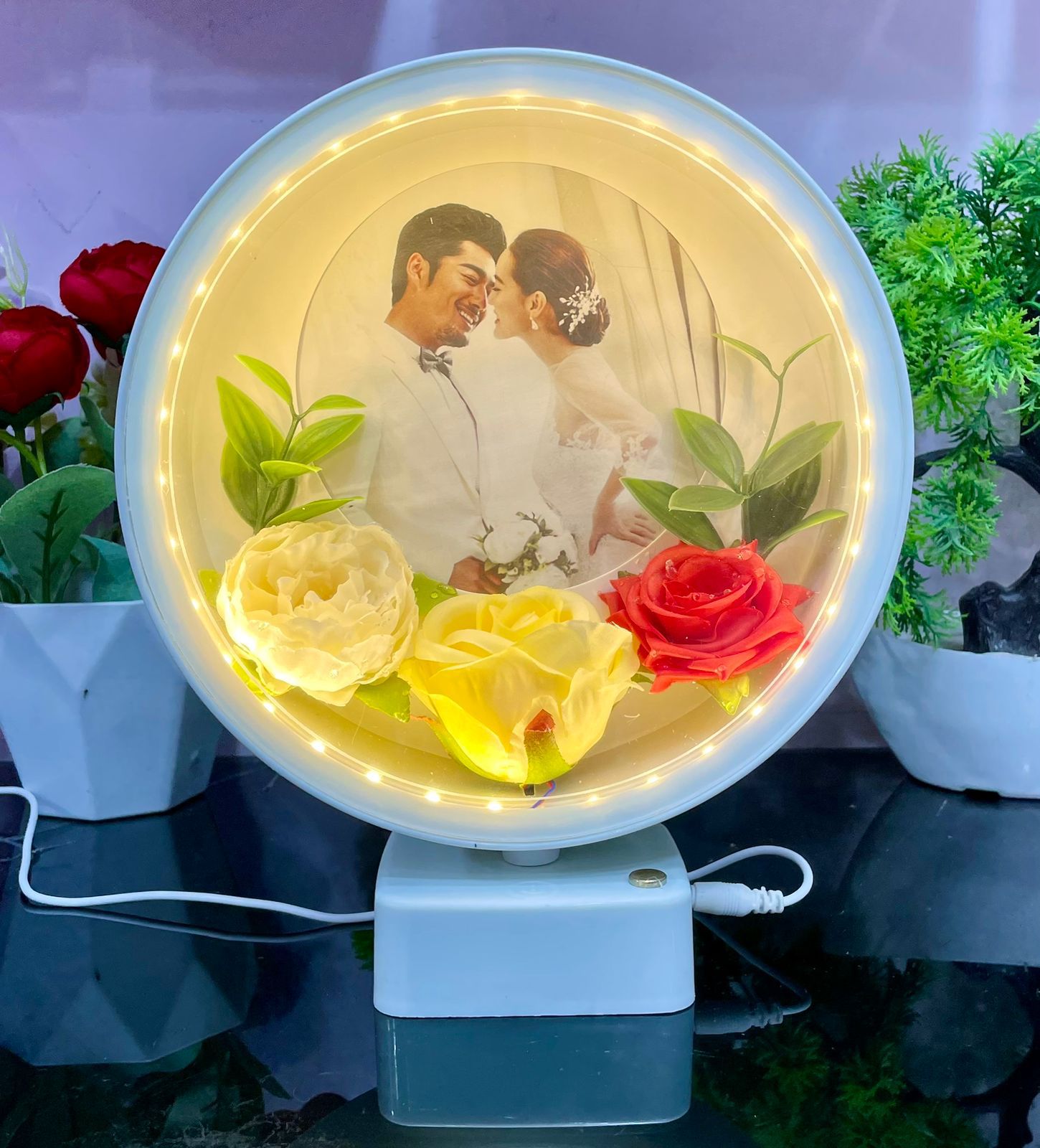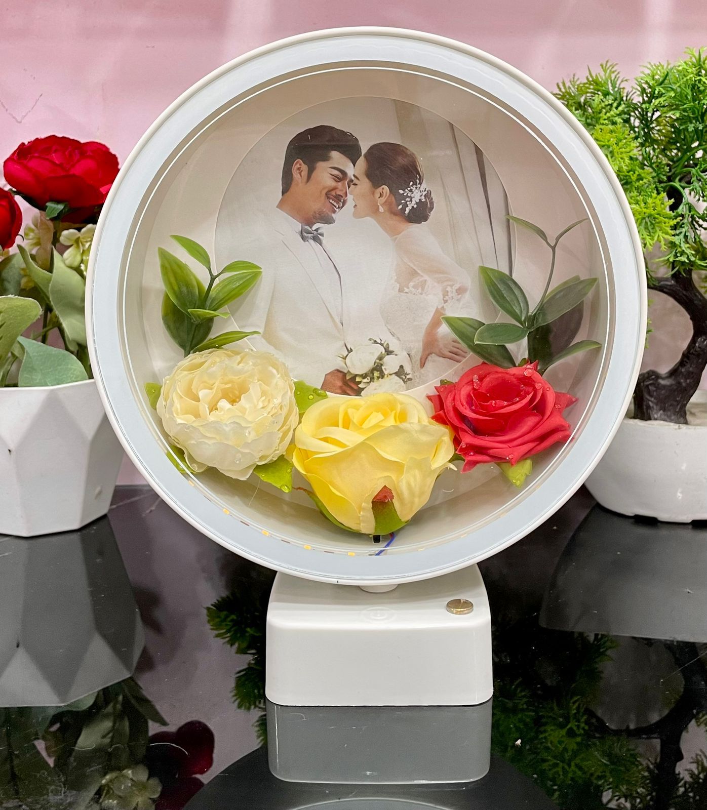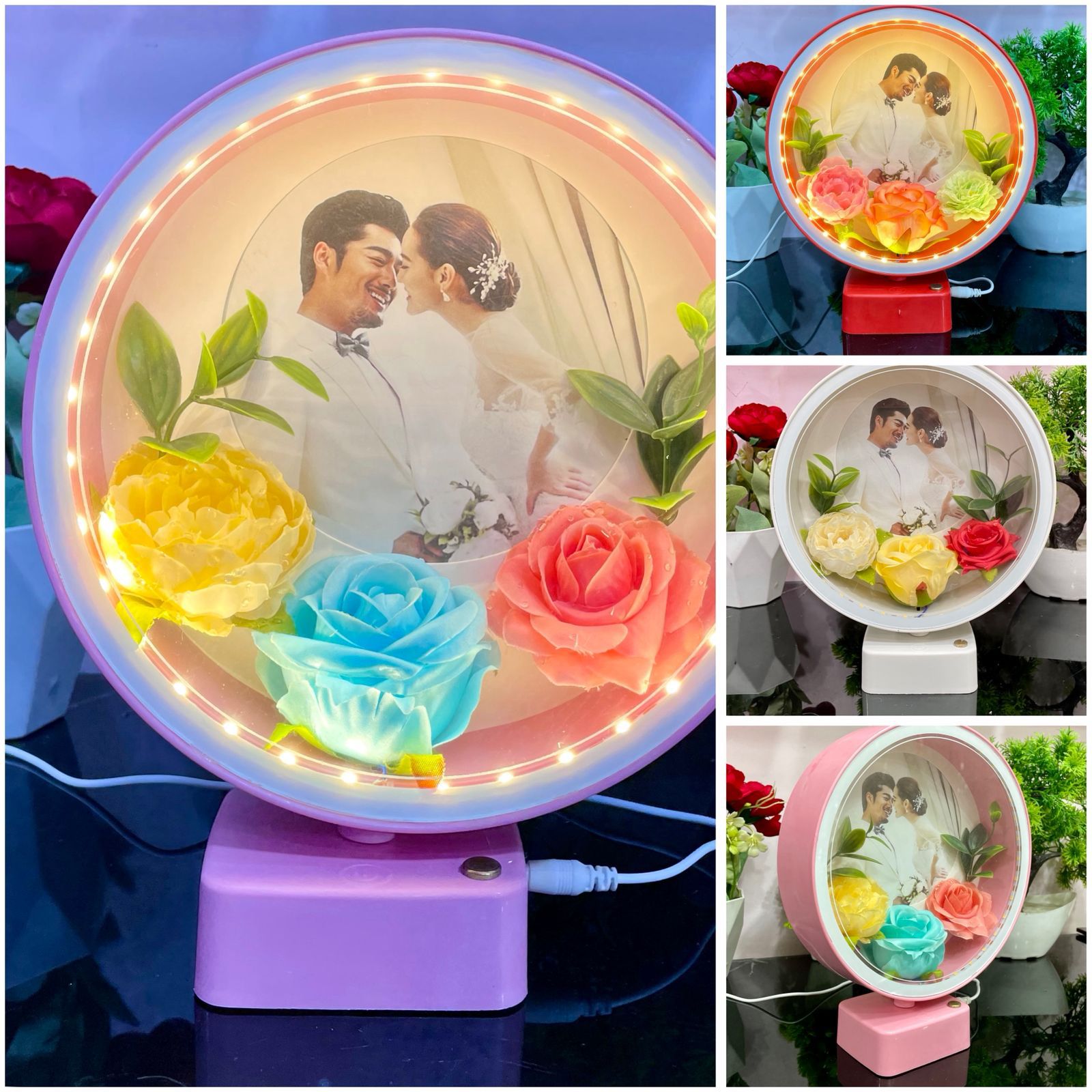 Beautiful Round Shape Touch Photo Frame Lamp With Flower
