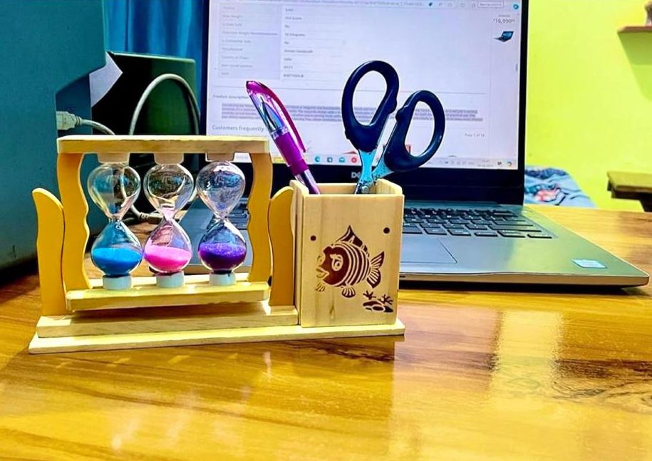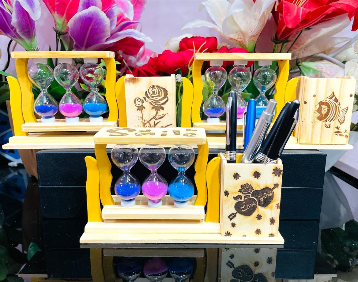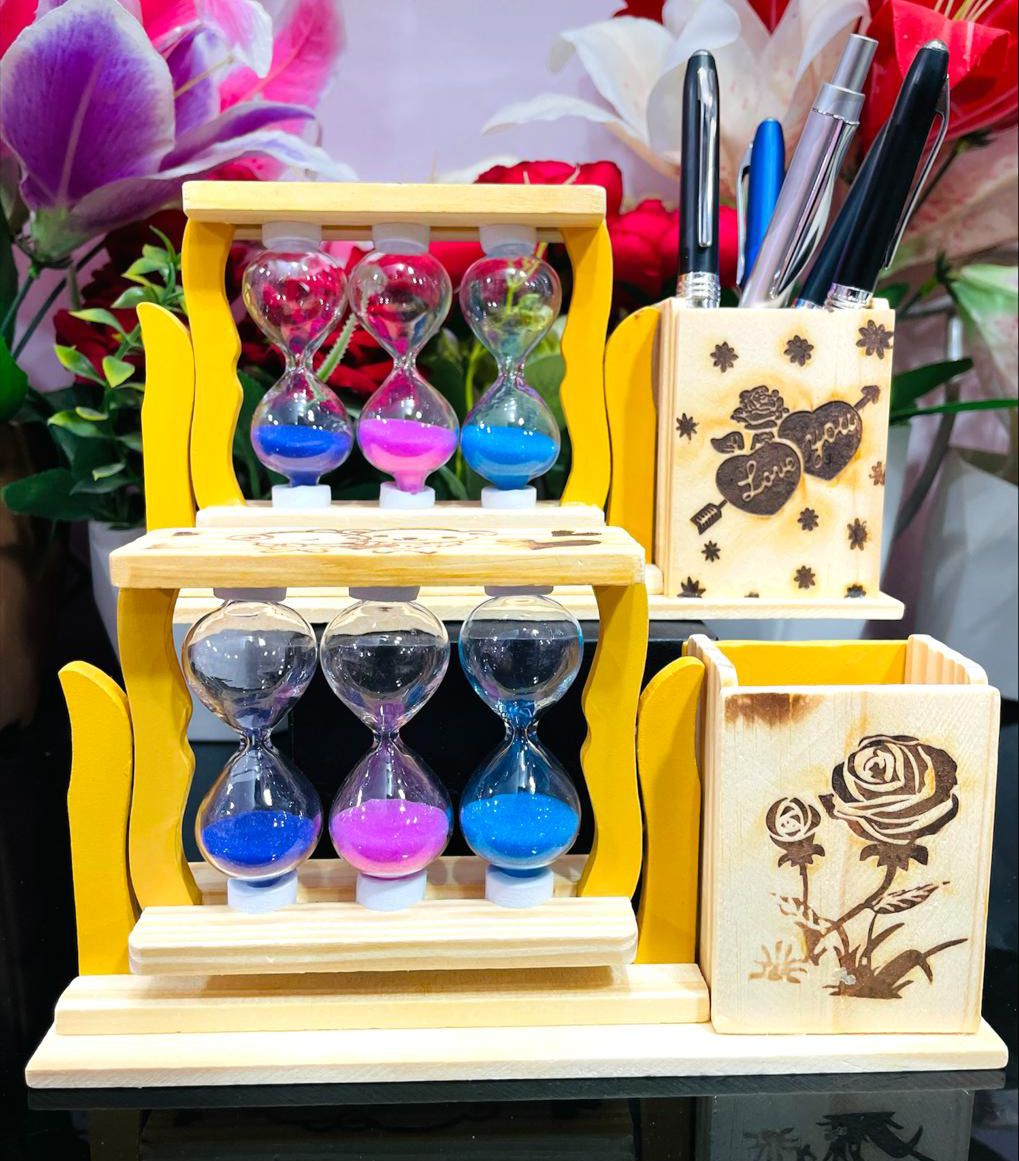 Triple Sand Timer With Wooden Pen Stand ⏱️