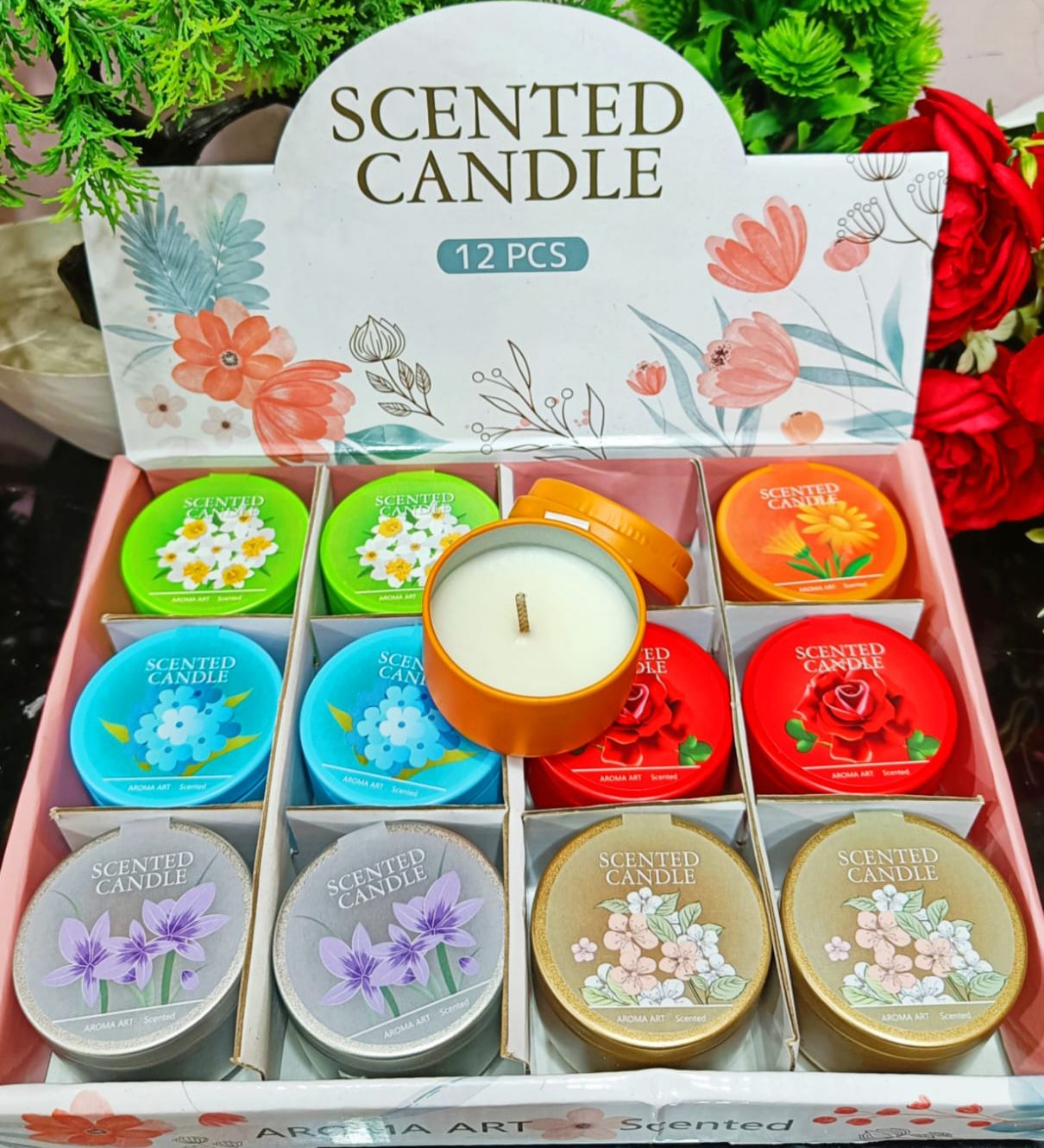 Mix Fragrance Premium Aroma Tin Scented Candles (Size: 2 Inch) (12 Piece Box)