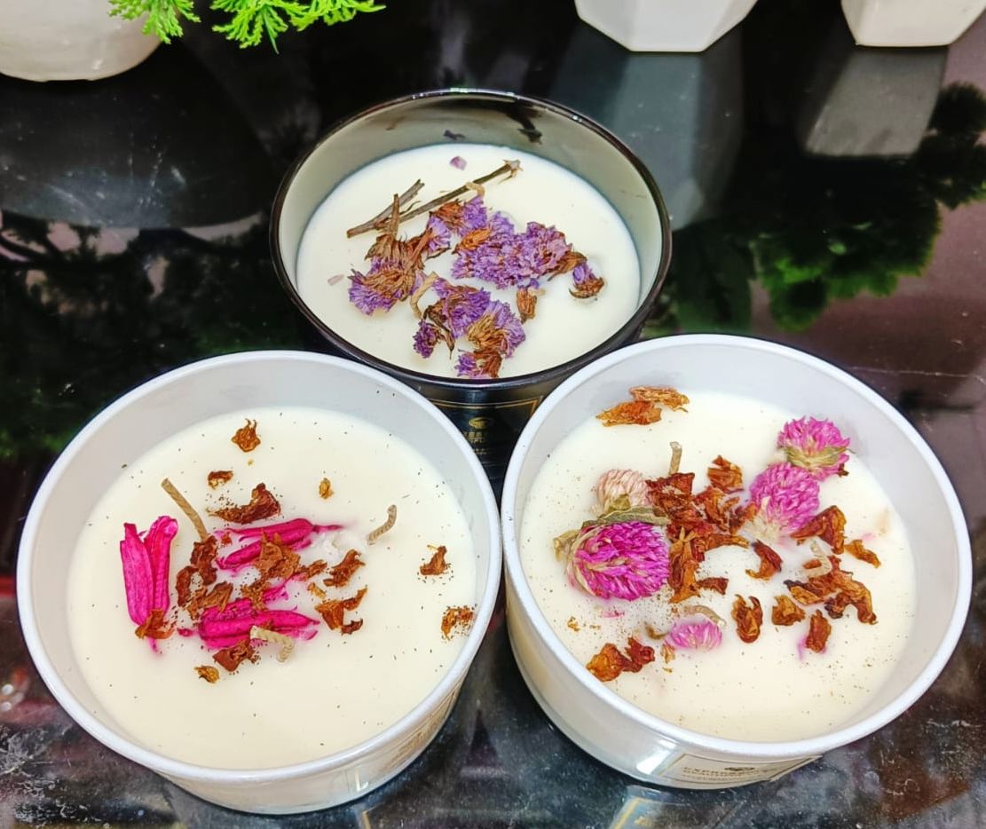Beautiful Decorative Premium Aroma Glass Candle With Real Flowers (Size: 4*2.5 Inch) (1 Piece) 🕯️