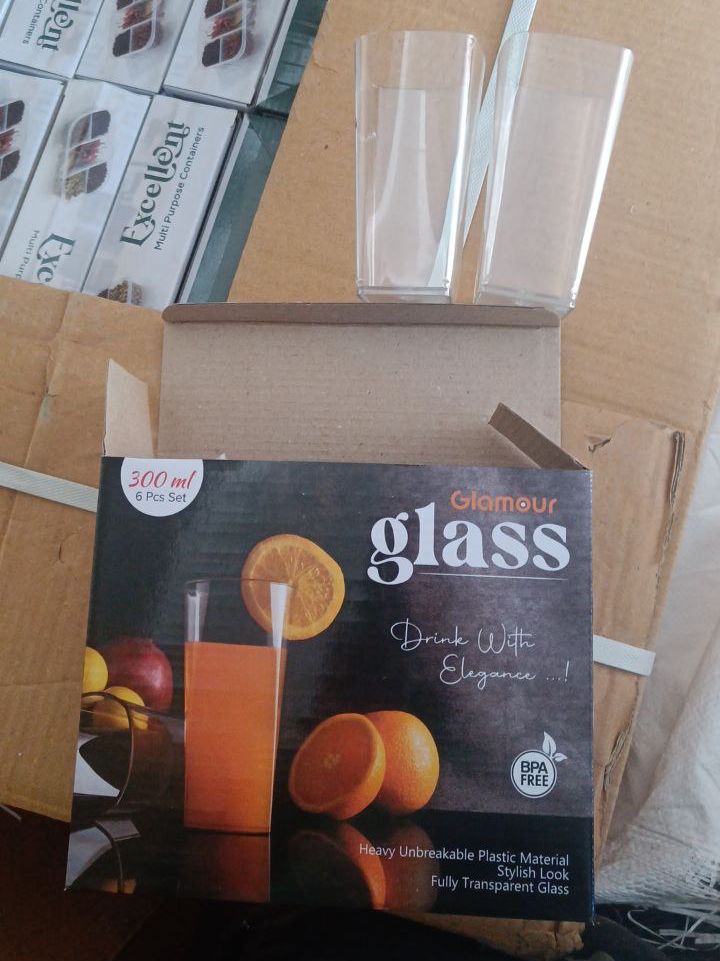 Transparent Glass Set Of 6 Piece (300ml Each)- Plastic Material
