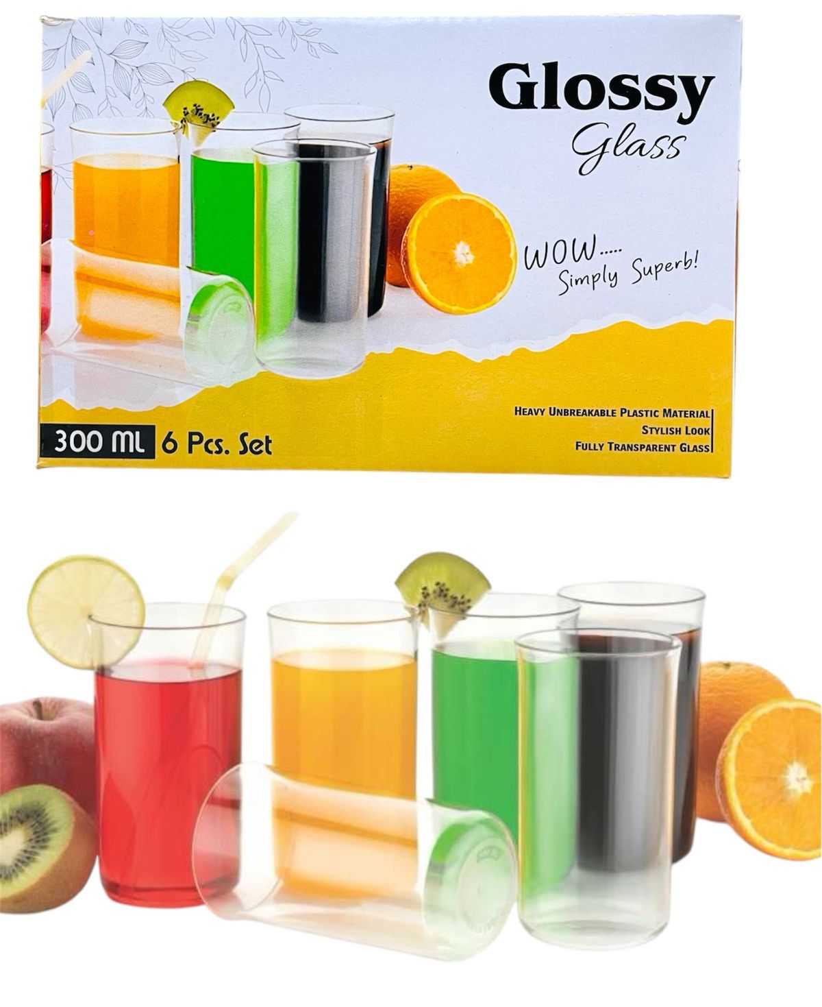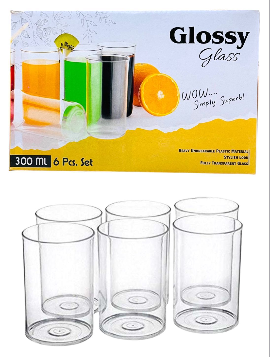 Transparent Glass Set Of 6 Piece (300ml Each)- Plastic Material