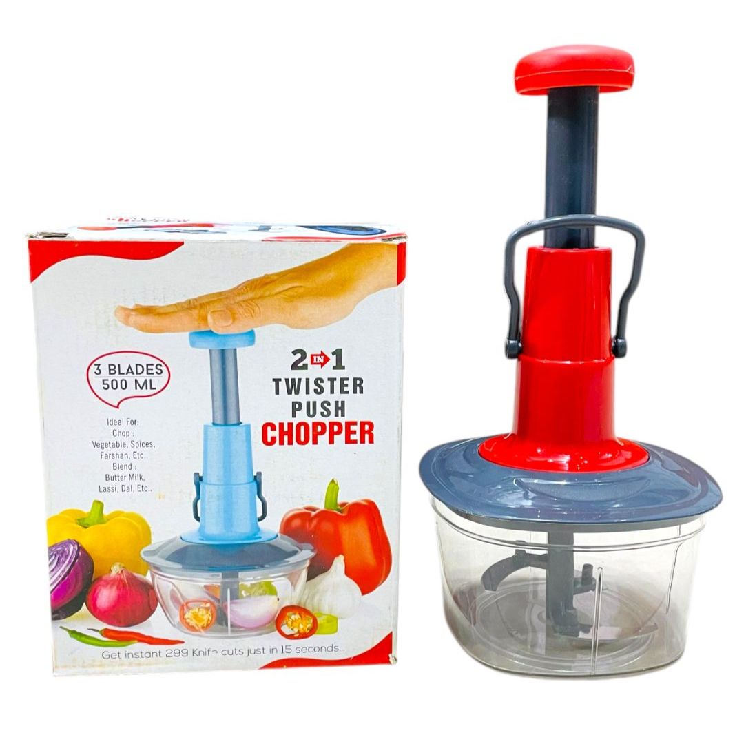 Make meal prep fast, easy, and mess-free with the 2 in 1 Push Chopper (500 ML) – your perfect kitchen companion for quick chopping, dicing, and slicing! With a simple push mechanism and ultra-sharp stainless steel blades, this handy chopper takes the effort out of prepping veggies, fruits, nuts, and more.