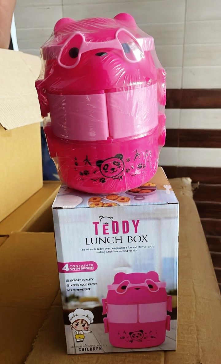 Make mealtime fun and fuss-free with the 4 Compartment Teddy Lunch Box specially designed to keep your food fresh, organized, and full of love With its adorable teddy design and practical four-compartment layout, this lunch box is perfect for kids, students, and anyone who enjoys well balanced, home-cooked meals on the go. It’s the ideal companion for school, office, or travel combining cuteness with convenience!