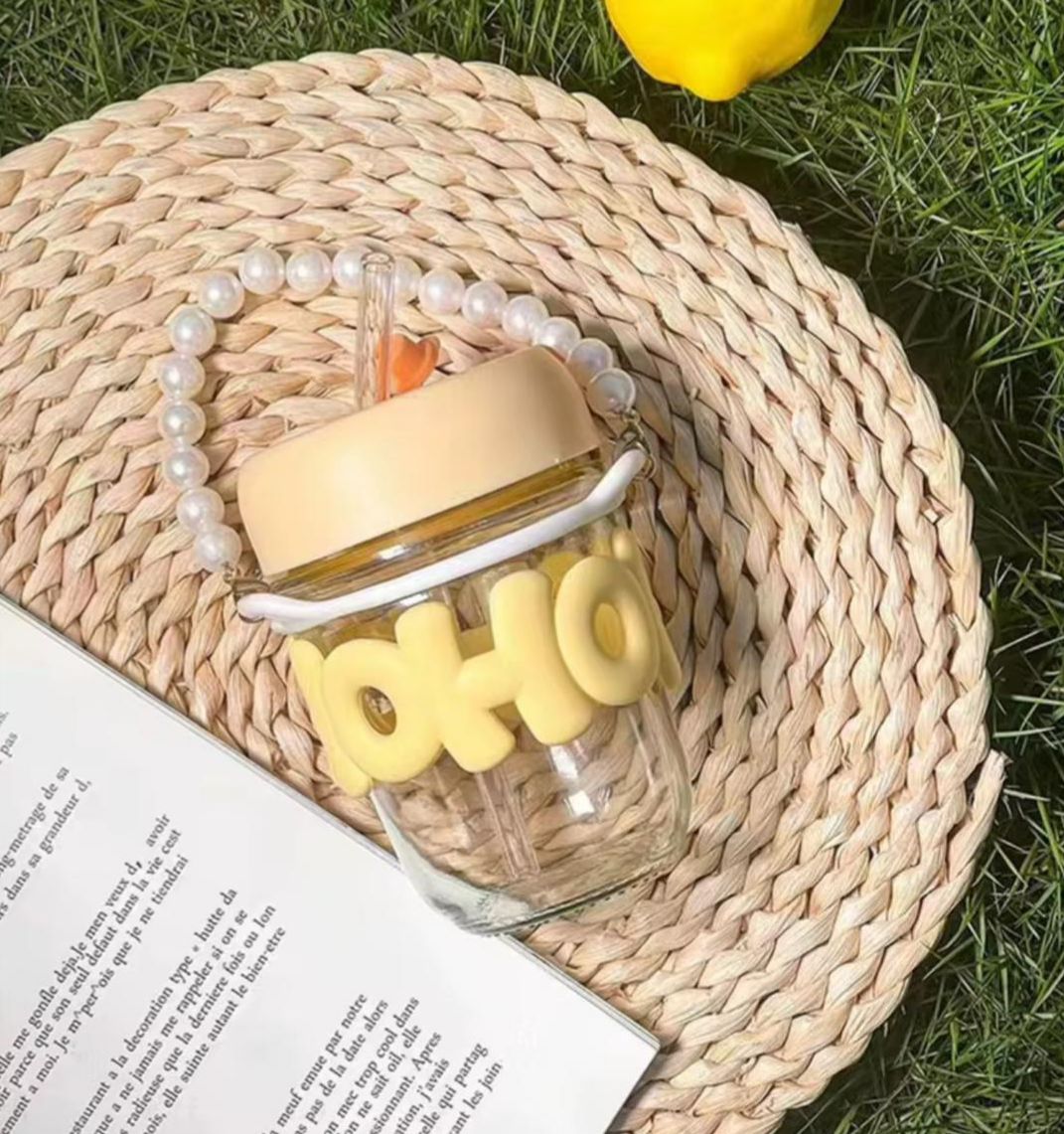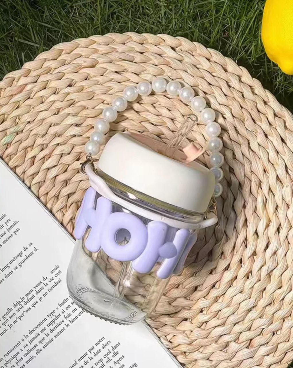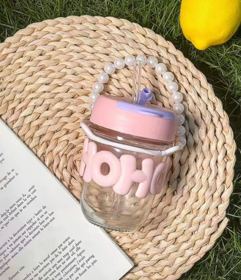 Add sparkle to your everyday hydration with the Cute Glass HOHOHO Sipper With Pearl Chain (350ML)! Designed for those who love a mix of charm and class, this adorable sipper bottle combines premium glass quality with a trendy pearl chain handle — making it perfect for gifting or personal use. Whether it’s your morning juice, smoothie, or iced coffee, enjoy every sip in total style!