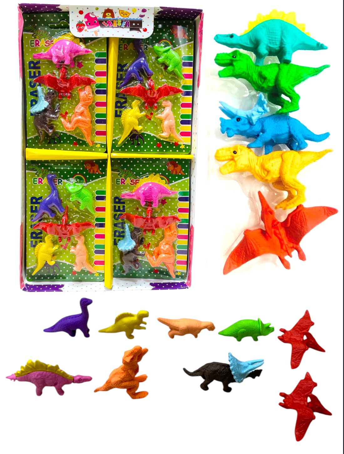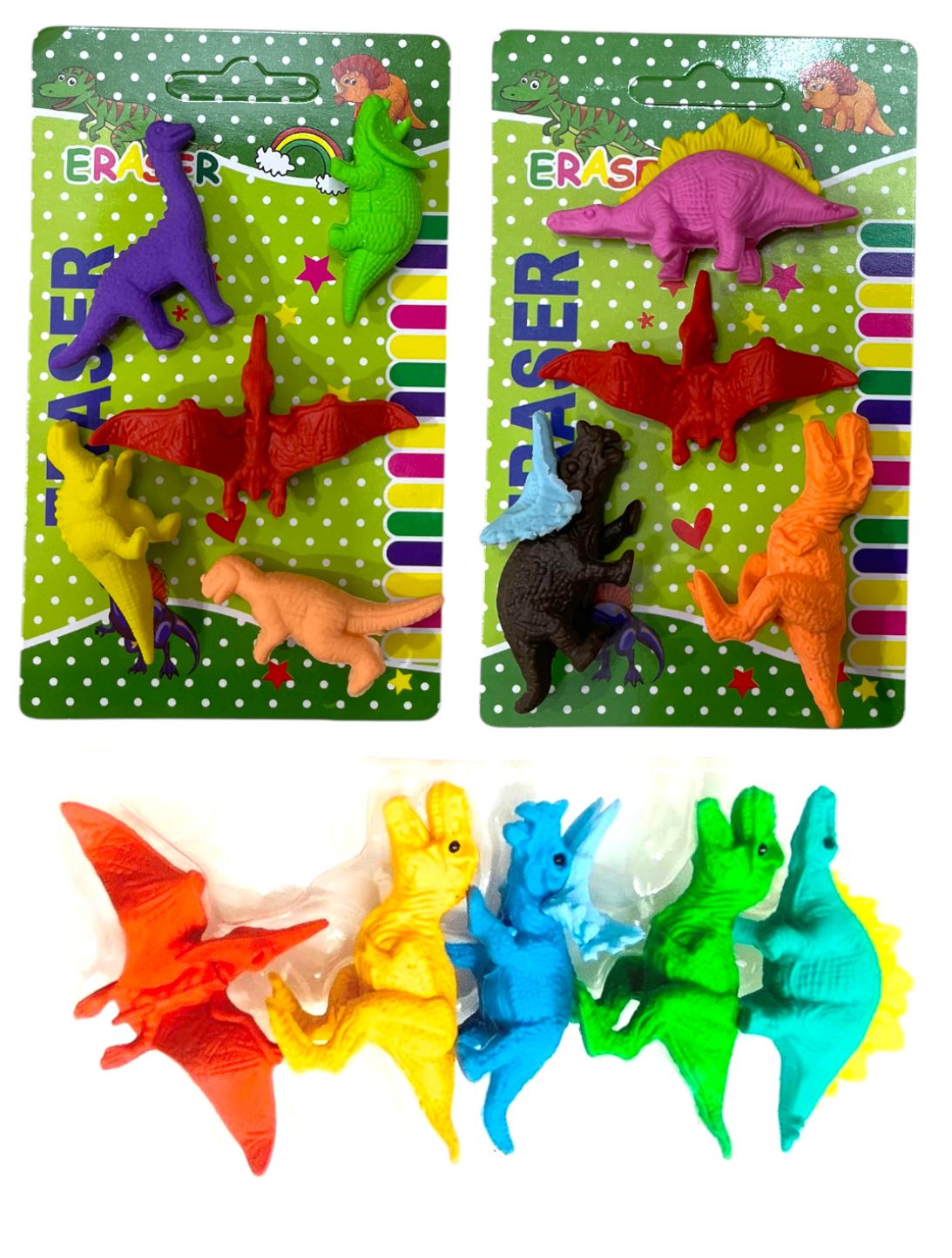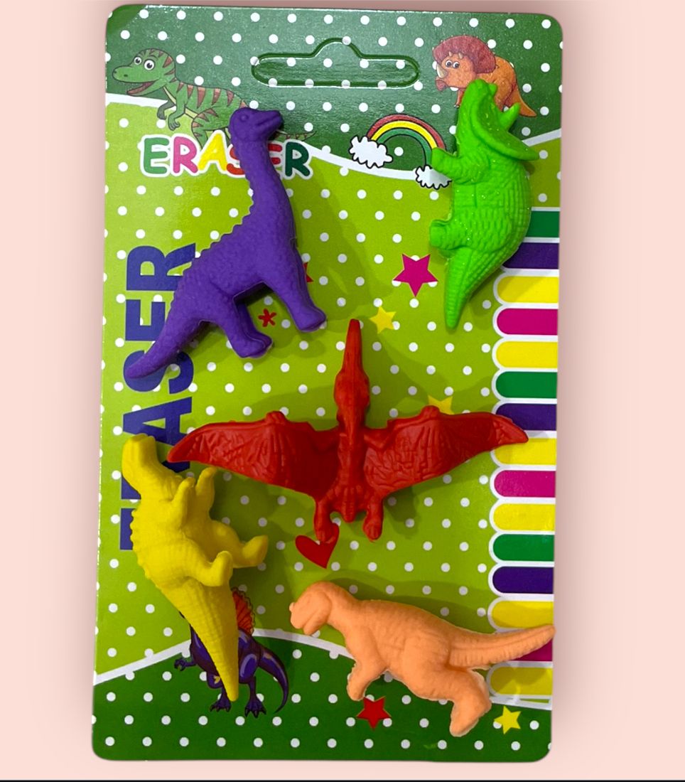 Make studying and drawing extra exciting with the Dinosaur Design Eraser Card (Mix Design)! Each set features adorable, colorful dino-shaped erasers beautifully packed on themed cards — perfect for kids who love prehistoric adventures. These cute and effective erasers make homework, doodling, or gifting a fun, imaginative experience. Ideal for schools, return gifts, and stationery collections!