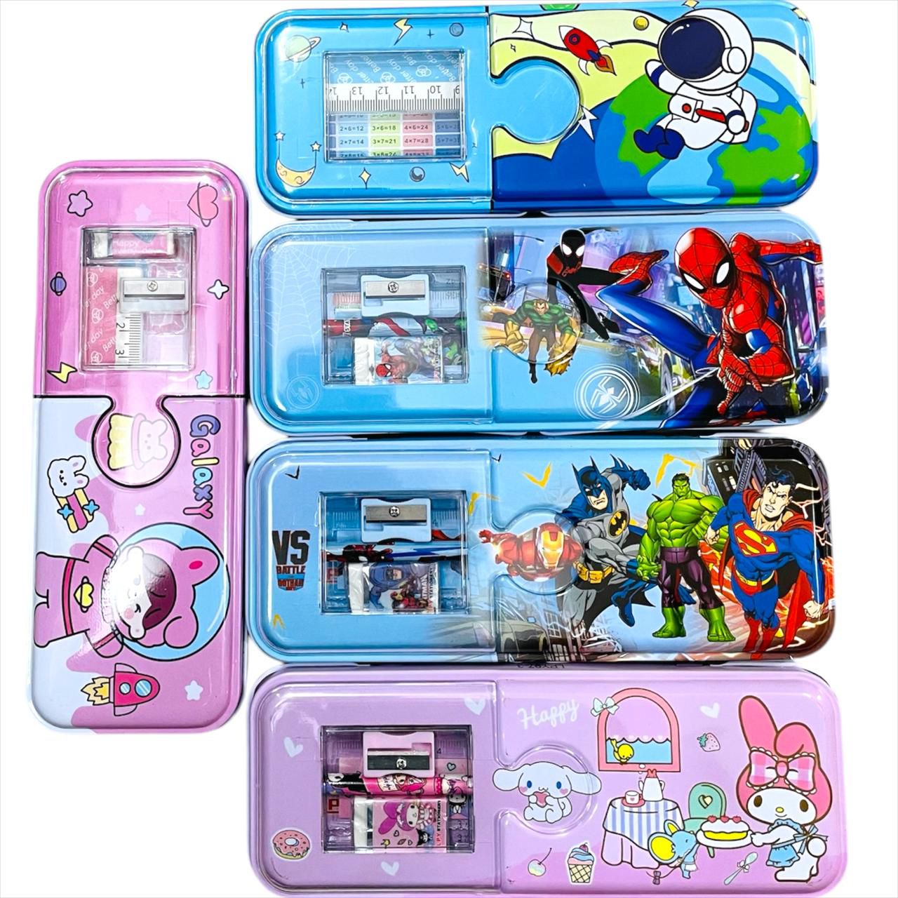 •  Includes pencils, eraser, sharpener, ruler, pens, and more — everything a student needs in one place.