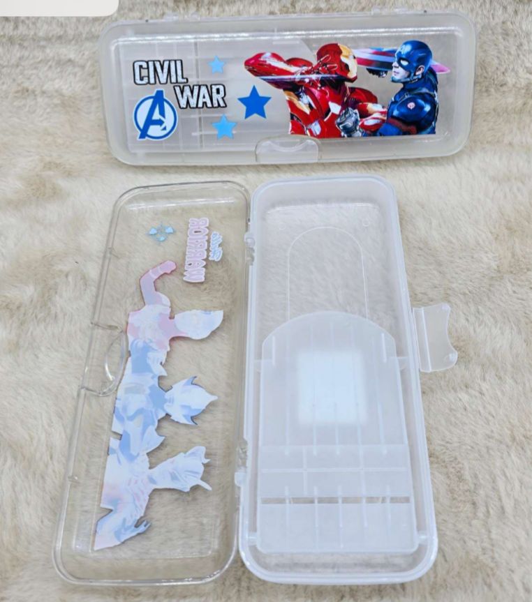•  Comes in multiple cartoon and superhero themes that kids adorable                                           • Stores geometry tools, pencils, pens, erasers, sharpeners, rulers, and more with ease.                   •  Made from strong, non-toxic plastic designed to handle daily school use.