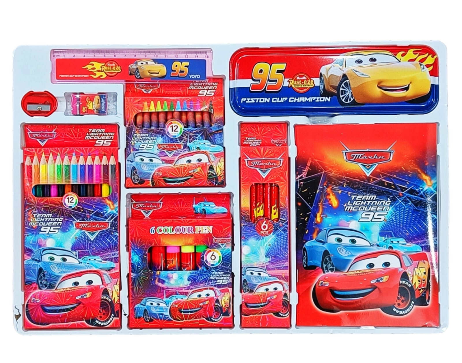 • Includes pencils, pens, erasers, sharpeners, rulers, crayons, notepads, and more — everything a child needs in one pack.
