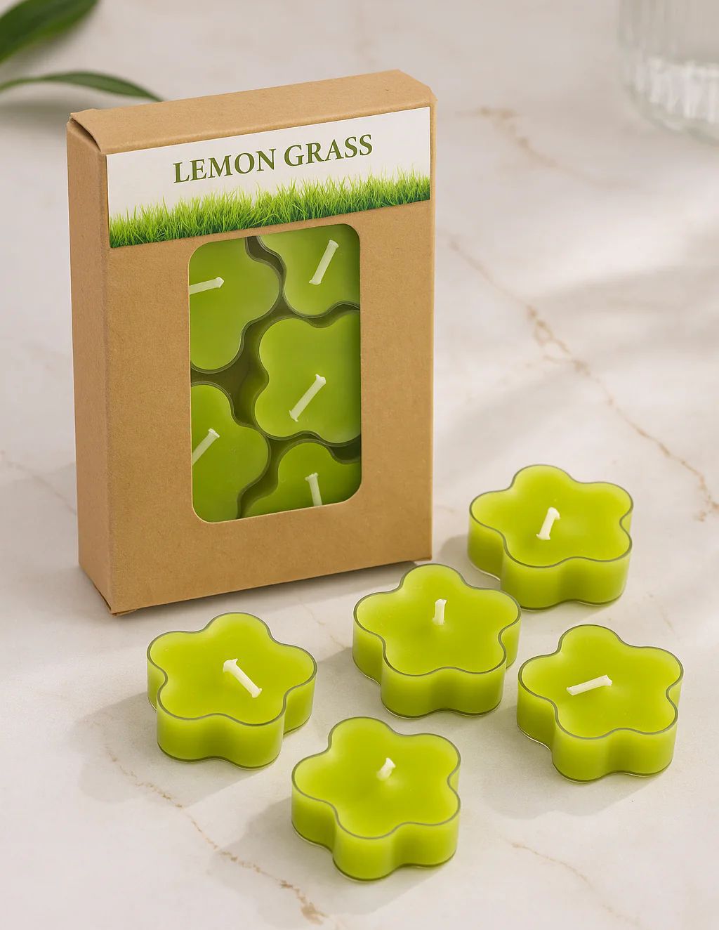 Crystal Flower Lemon Grass Scented Long Burning Tea Light Candles (Pack of 5 Piece) - 1 Unit